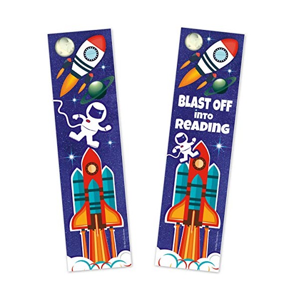 Astronaut Rocket Ship Bookmarks for Kids - (Bulk Pack of 20 Bookmarks) Blast Off Into Reading - Outer Space Galaxy Theme - Summer Reading Program - Library Student Incentives Prizes Party Favors