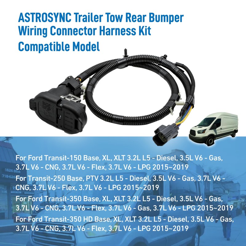 ASTROSYNC Trailer Tow Rear Bumper Wiring Connector Harness Kit Compatible with Ford Transit-150 Transit-250 Transit-350 Transit-350 HD 2015~2019, Replace PN CK4T-13B576-KE, CK4Z-13A576-B