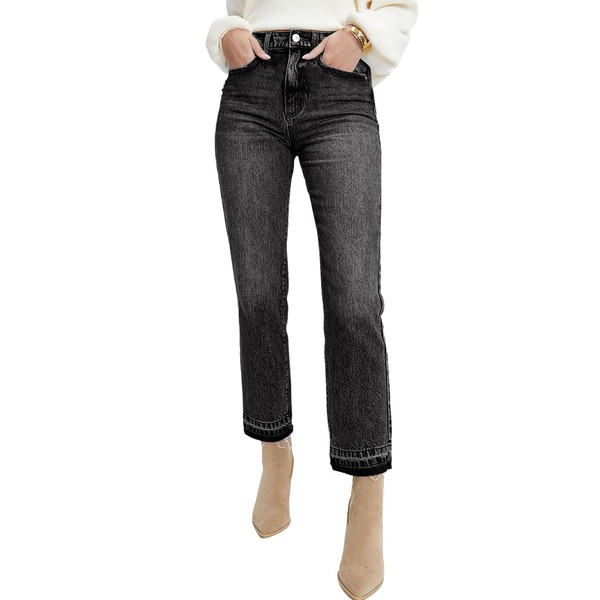 Astylish Women High Waisted Straight Leg Jeans for Women Stretch Denim Pants Black