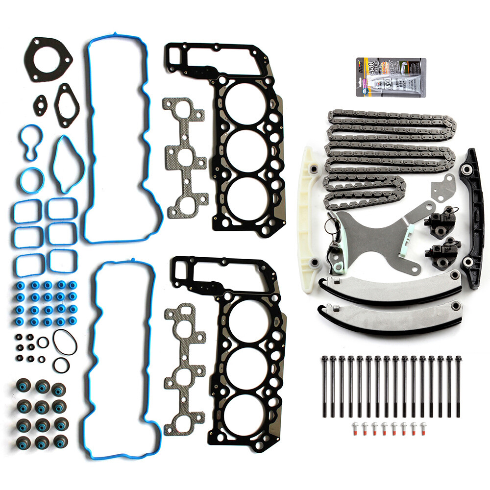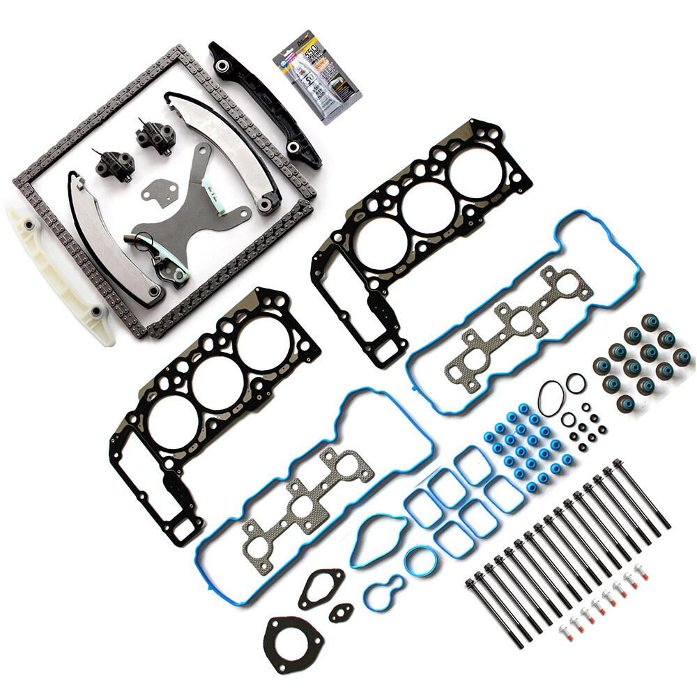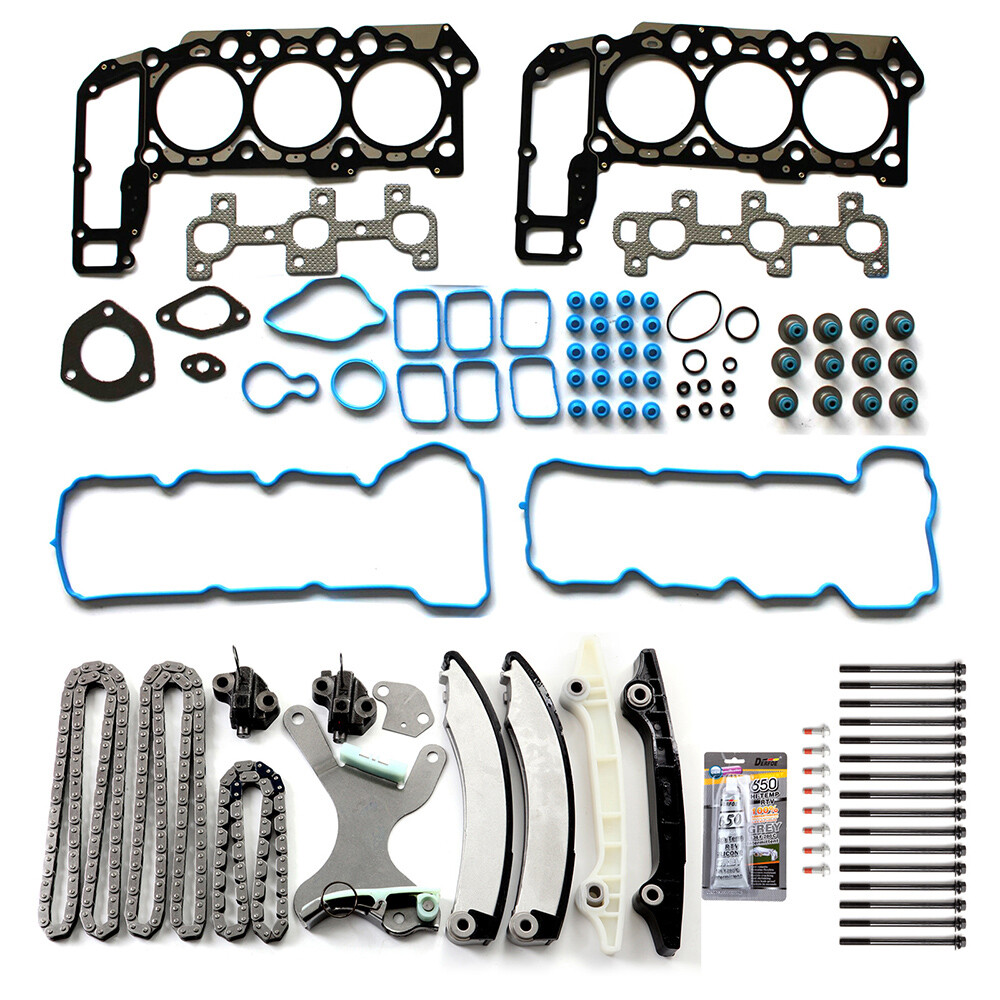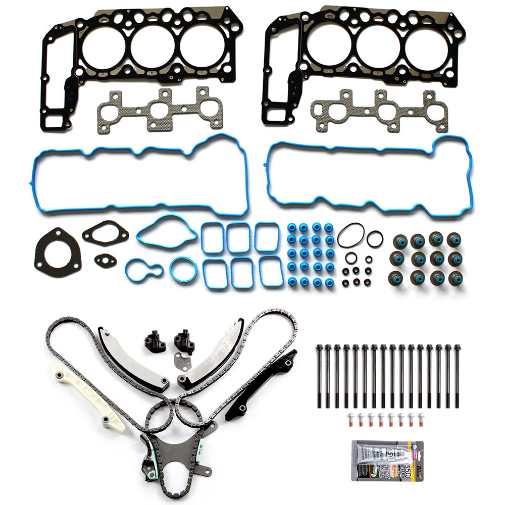 asucarparts New Timing Chain Kit Head Bolts Gasket Set For 05-09 Dodge Jeep Mitsubishi 3.7L