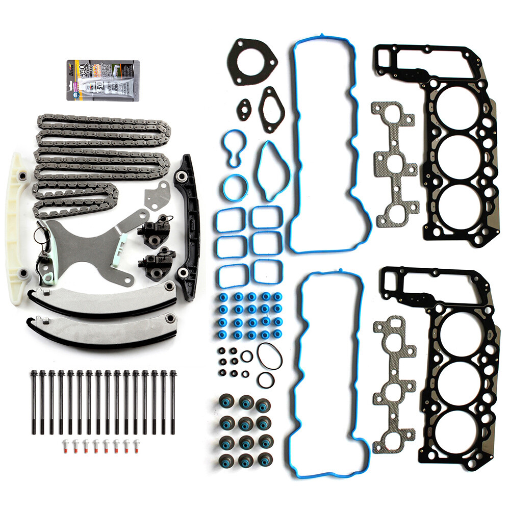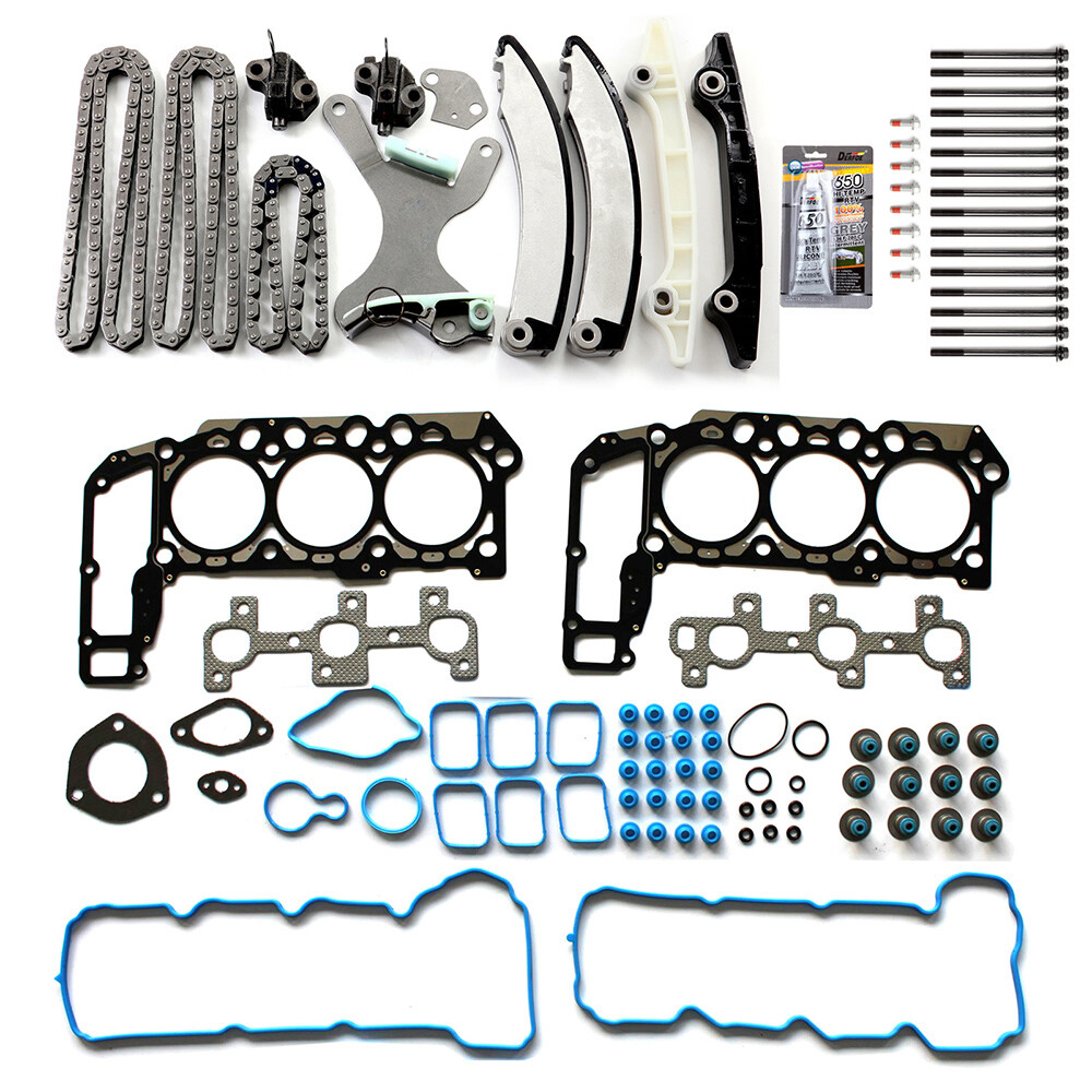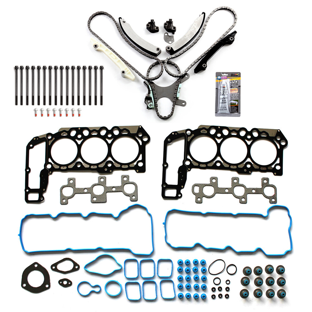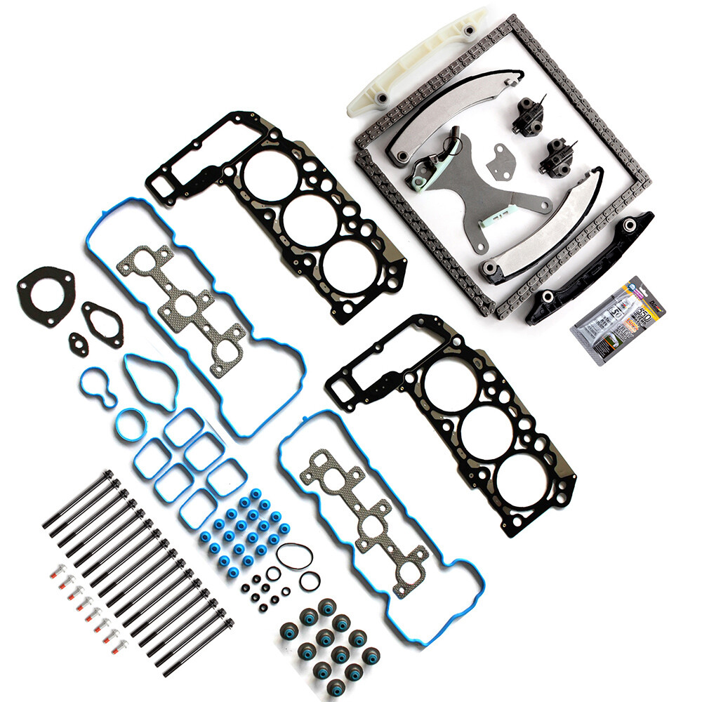 asucarparts New Timing Chain Kit Head Bolts Gasket Set For 05-09 Dodge Jeep Mitsubishi 3.7L