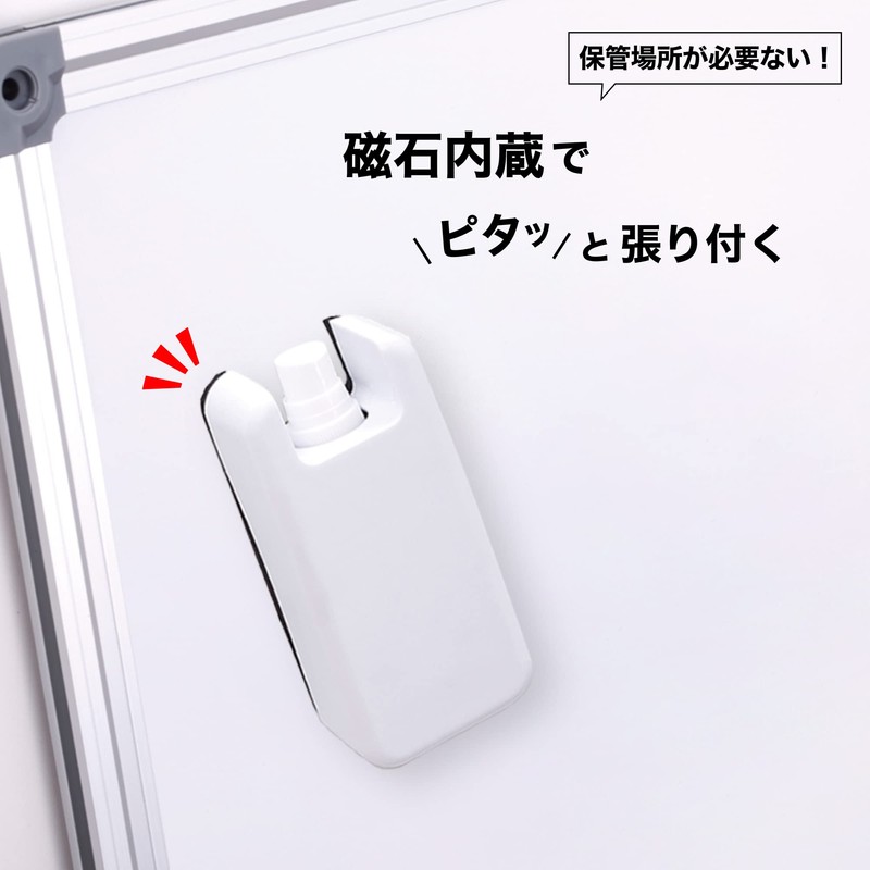 - Easy to apply pump spray bottle. The eraser has a built-in magnet to keep it closed. The tapered parts can be erased in fine corrections