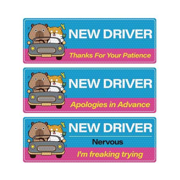 ASUNO 3PCS New Driver Magnet Stickers 10" x 3.3" Thanks for Your Patience Student Novice Signs Magnetic Safety Bright Reflective Reusable Movable Funny for Vehicle Car Bumper