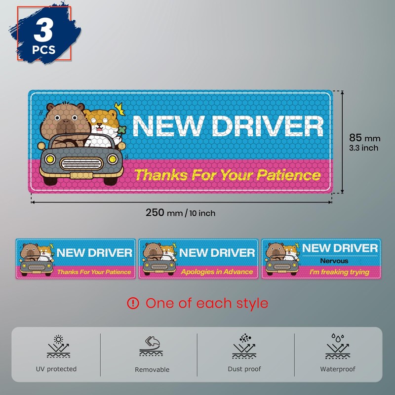 - Package Include: You will receive 3 PCS student driver car magnets, each measuring 10 × 3.3 inches(250 × 85 mm). They fit all steel-bodied vehicles.