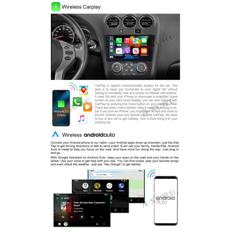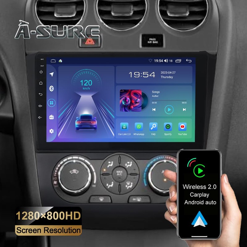ASURE Android Car Stereo Radio for Nissan Altima 2007-2012 Manual Air Conditioner,9 inch 4Core 2G+32G Car GPS Navigation Unit with Wireless Carplay,Android Auto,1280x800 Touchscreen Multimedia Player