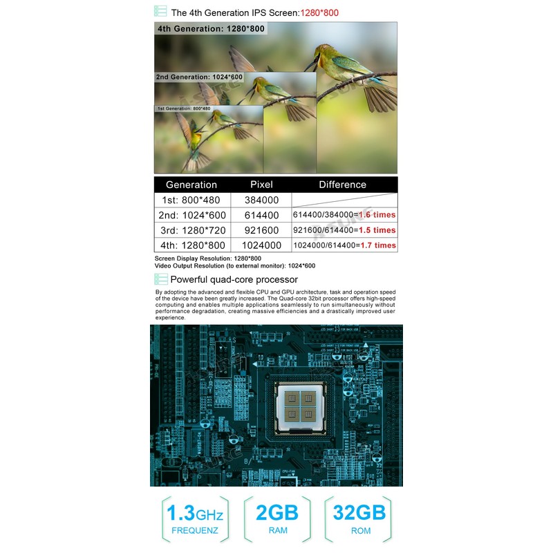 CPU: High-quality Quad-core 1.2GHz with more efficient computing capability