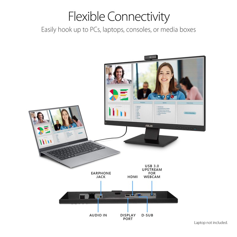 ASUS ASUS BE24EQK 23.8” Business Monitor with 1080P Full HD IPS, Eye Care, DisplayPort HDMI, Frameless, Built-in Adjustable 2MP Webcam, Mic Array, Stereo speaker, Video Conference,BLACK