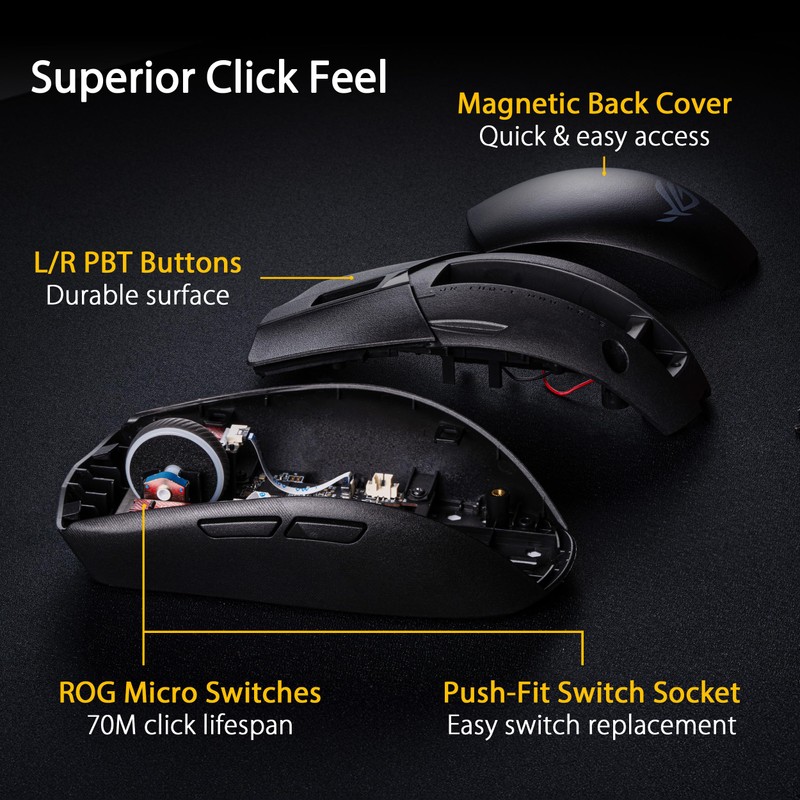 - ROG Micro Switches: 70-million-click lifespan and controlled, consistent click feel