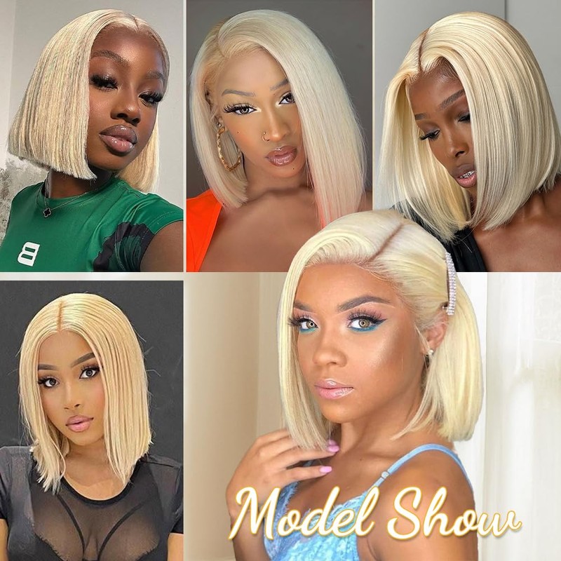 ASUTTRY 613 Blonde Bob Wig Human Hair 200 Density 13x4 HD 613 Lace Front Wigs Human Hair Pre Plucked Straight Blonde Short Bob Wig for Women 14"