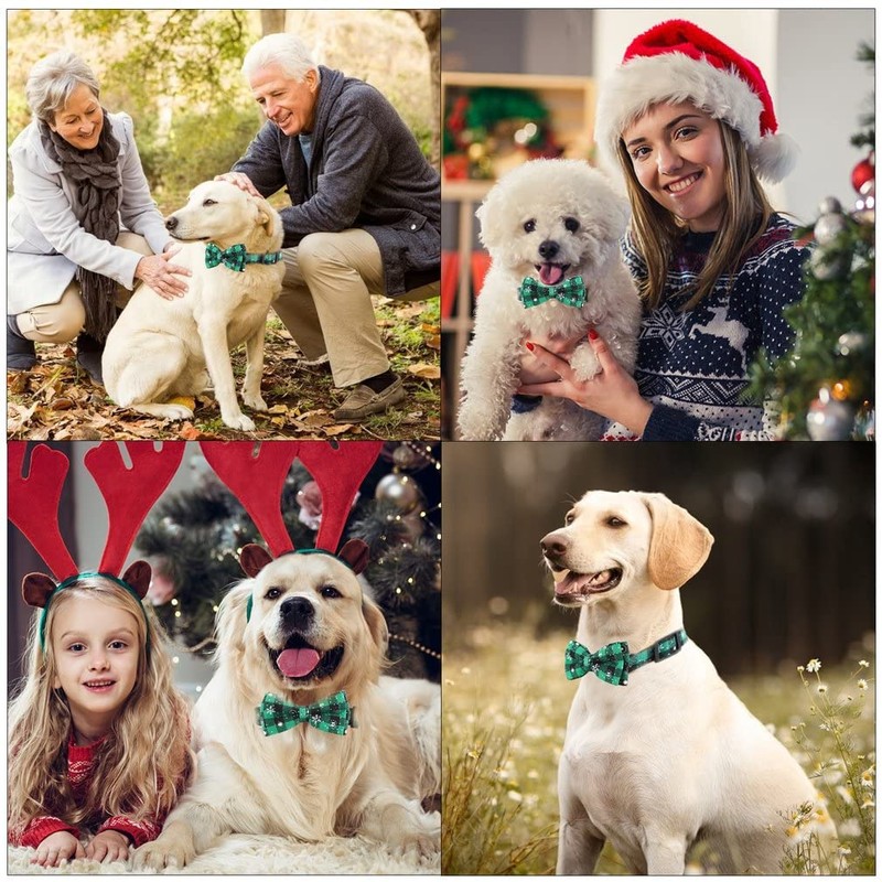 Asvin Christmas Dog Collar, with Bow tie Collar, Soft, Comfortable and Adjustable, For Dogs Small Medium Large Christmas (M, Green)