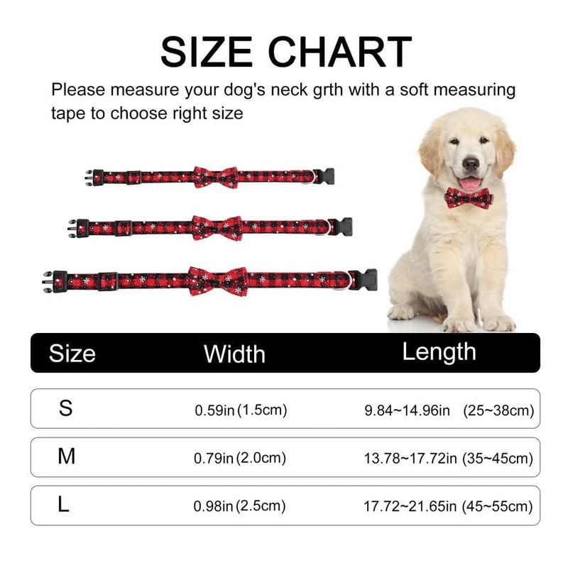 - ✔ Festive Dog Collar - This unique, adjustable, and durable collar for dogs is made from soft cotton and highlights your furry friend's personality. The elastic band securely holds the handmade bow in place and can be easily removed to give your beloved dog a more relaxed look. Different sizes are available for small, medium, and large dogs.