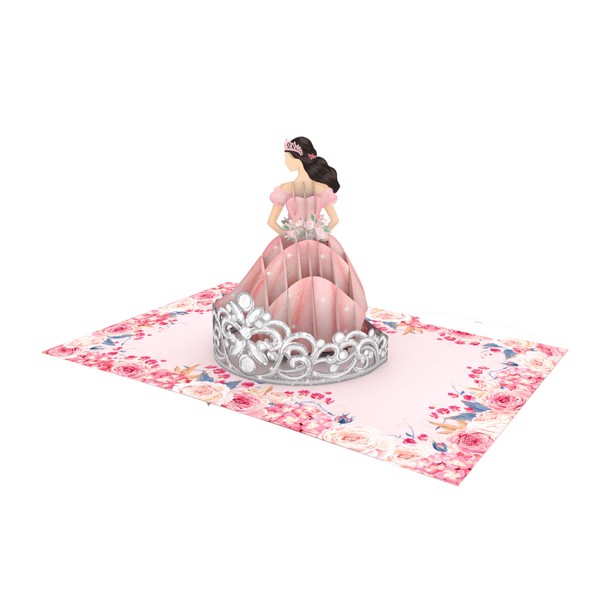 - A DELICATE POP-UP SURPRISE: When opened, the card reveals a lovely 3D scene of a girl in her pink Bat Mitzvah dress, surrounded by intricate floral designs and an elegant crown, symbolizing her stepping into adulthood. This heartfelt design captures the beauty and significance of the day.