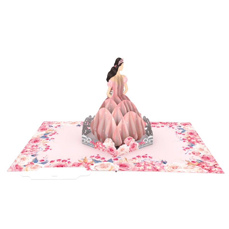 ASVP Shop Bat Mitzvah Card - Pop Up 3D - Floral Design with Girl in Pink Bat Mitzvah Dress and Crown