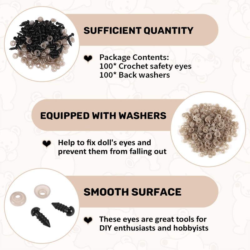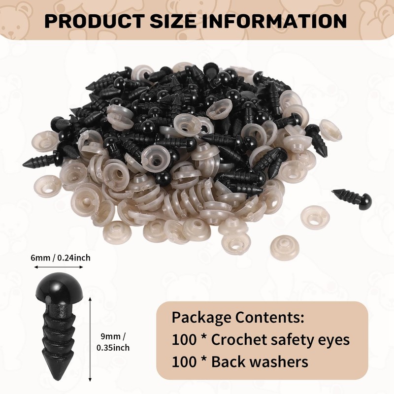 - High Cost Performance: These safety eyes kit contains 100 6mm eyes and 100 washers, in a quantity total of 200 pieces. You can DIY crafts, which bring you a good enough making experience.