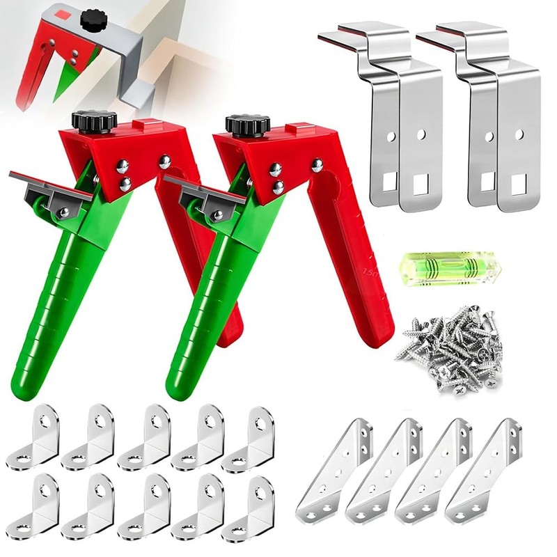 - [ Complete Kit with Setting Tools for Precise Results] Our Drawer Front Installation Clamps contain 2 Clips, A Level, 4 Stainless Steel Angle Code with Screws and 10 "L" Brackets.Achieve installation with our included woodworker's pencil and built-in level.