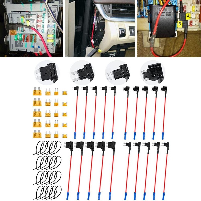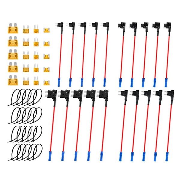 - 12V Car Add-a-Circuit Fuse Tap Adapter Kits ATO/ATC Mini ATS MICRO2 Low Profile Dual-Slot Blade Fuse Holders with Total 20pcs 5A Fuses