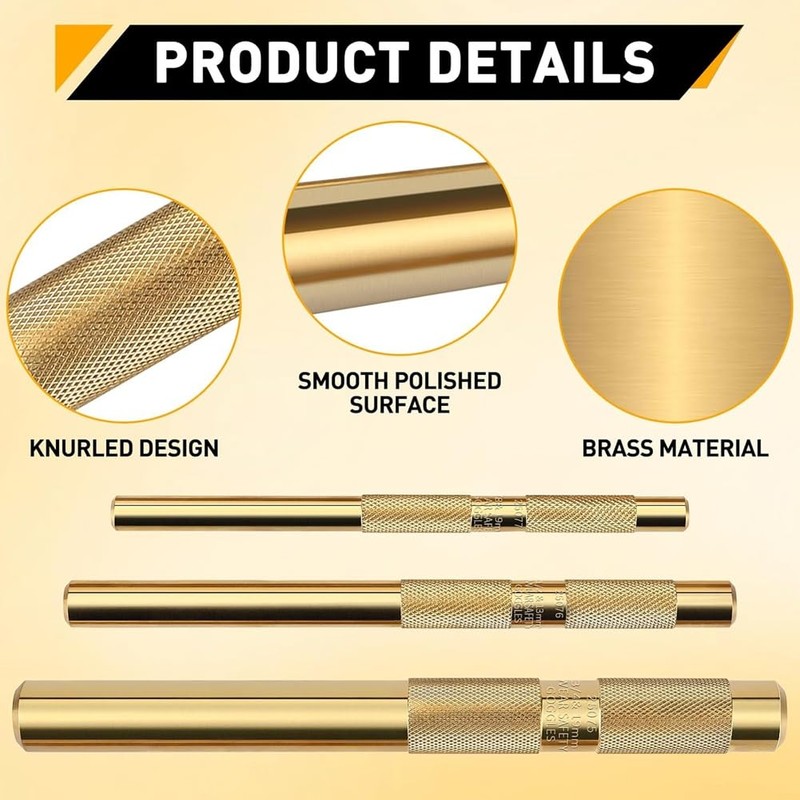 - Quality Material & Durability: Crafted from robust brass, this 3-piece drift punch set offers excellent durability and machinability. Its well-polished is not only aesthetically pleasing but also to rust and , ensuring long-term usability.