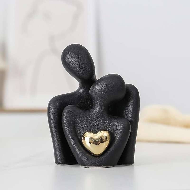 - Captured: This ceramic 'Hugging Couple Statue' embodies love and intimacy as the couple figurine shares a gaze, with a shining gold heart at the center, symbolizing a bright and precious bond. It's a mini yet impactful piece that brings a symbolic sparkle to any room, from the living room to office decor.