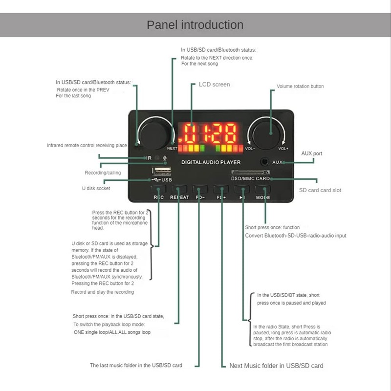 - The main function: 1. Decoding supports MP3, WMA, WAV, FLAC, APE lossless format music