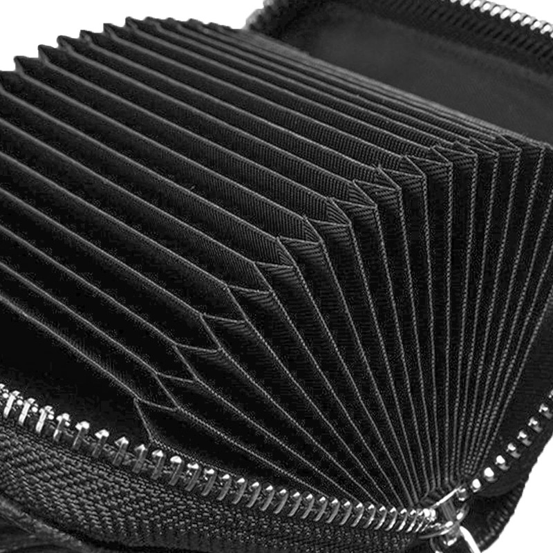 Aswewamt RFID 18 Credit Card Holder, Card Slots Zipper Card Wallet Leather Accordion Card Case Small Coin Wallet for Women Men, Black