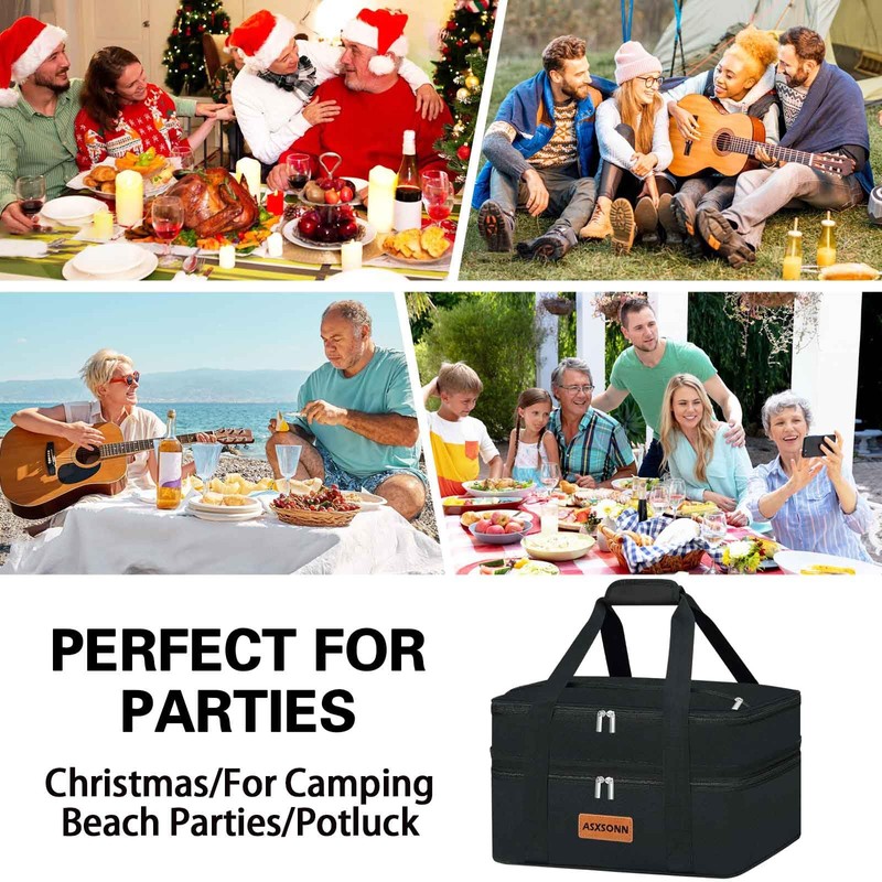 - 【Multi-function】Our casserole carriers are perfect for use while traveling. It is use for potlucks, Thanksgiving, Easter, Christmas, picnics, barbecues, camping, beaches. Large capacity double layer design, lightweight structure. You can use the casserole carrier to transport turkey, lasagna, pizza, cake, and the insulated casserole carrier provides ideal temperature control for dishes on the go.