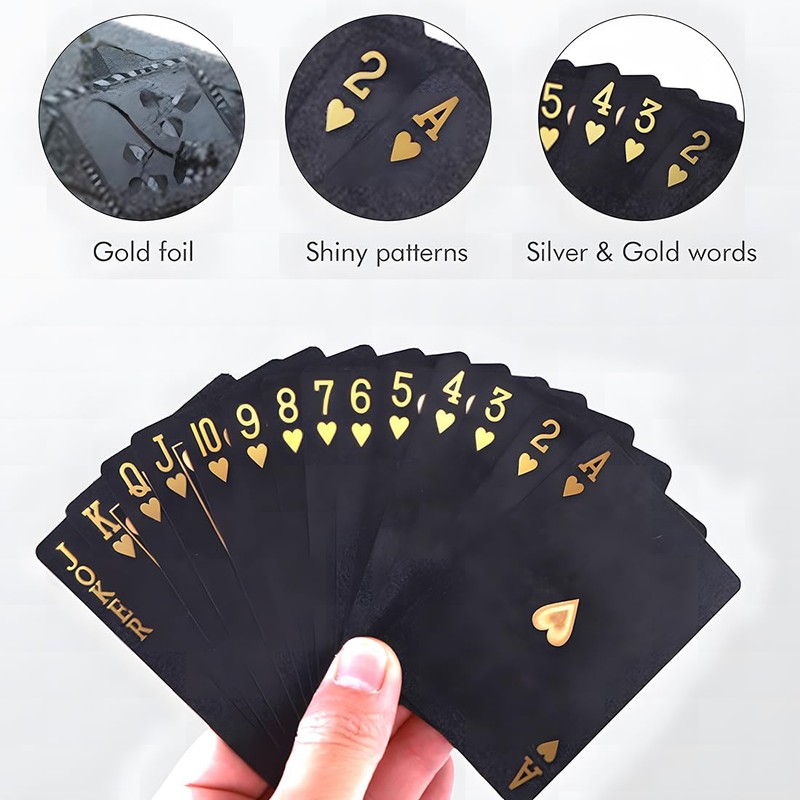 - High Quality Material Our black playing cards are made of flexible plastic of high quality and are waterproof, which ensures durable use.