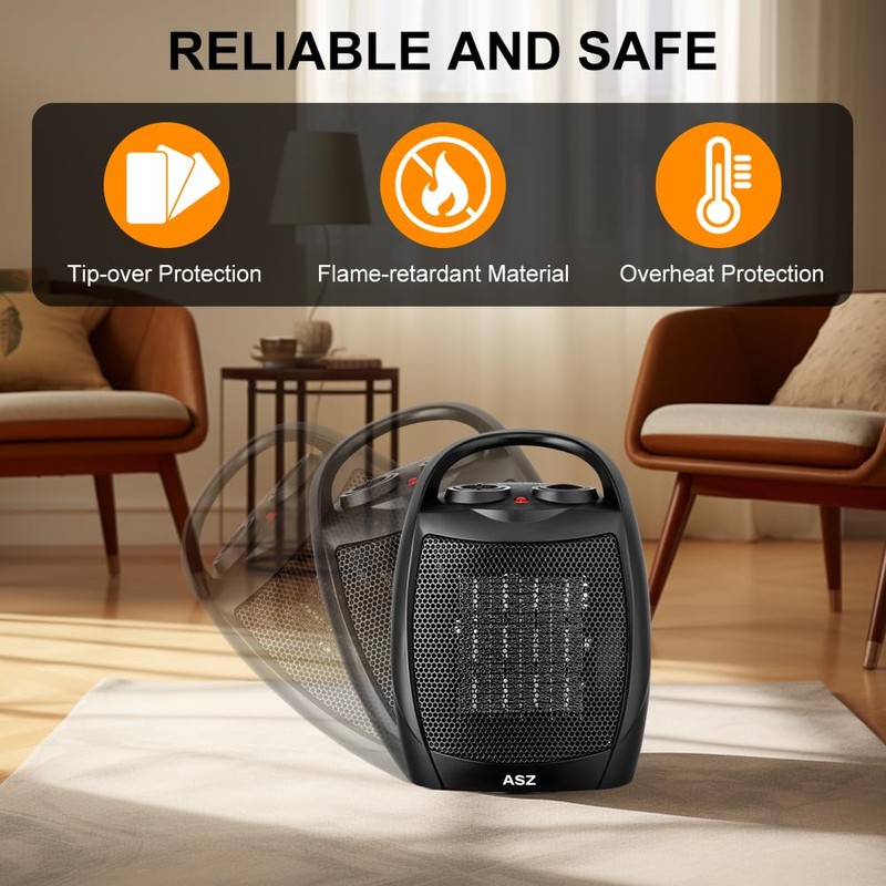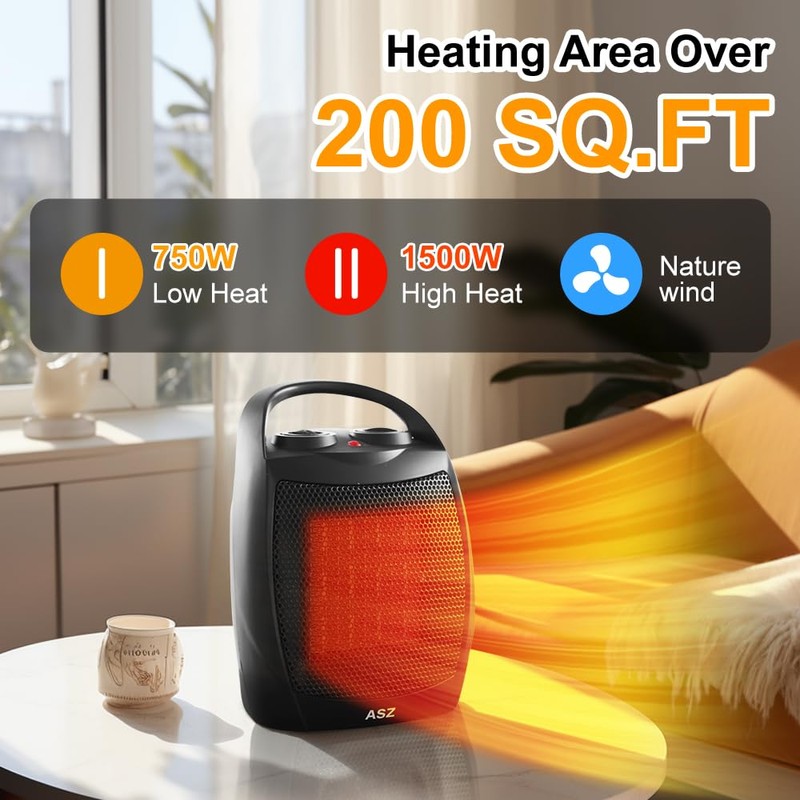ASZ Small Ceramic Space Heater Corded Electric, 750W/1500W Safe Heat Electric Heater with Thermostat, UL Certificate Office Desk and Home Indoor Use