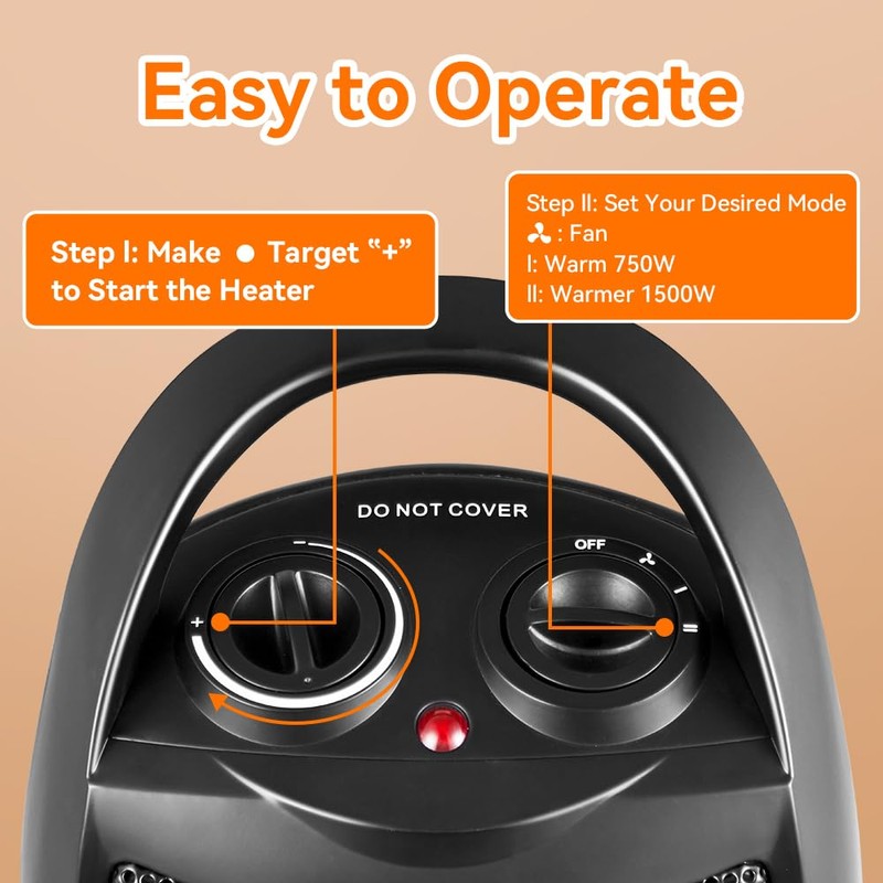 - Compact and practical design: Measuring only 11 inches, this space heater is perfect for small rooms. The classic dual knobs control temperature and oscillation, with a maximum rotation of 70 degrees. It is ideal for offices, bathrooms, small rooms, and student dorms.