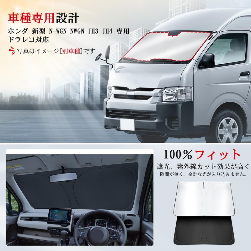 ASZSK Honda N-WGN/NWGN Custom JH3 JH4 Sunshade Front Shade Curtain 2nd Generation N Wagon Sunshade for Car Windshield Shade UV Protection Light Shielding Sleeping in Car Foldable Easy Installation