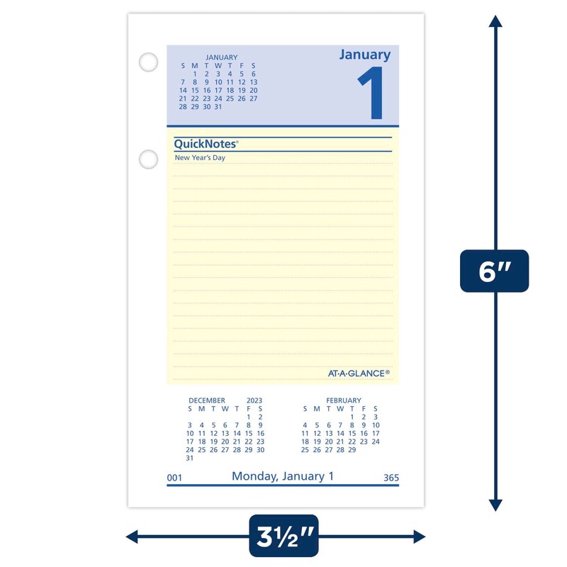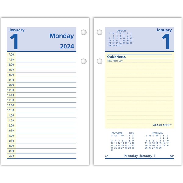 AT-A-GLANCE 2024 Daily Desk Calendar Refill, 3-1/2" x 6", Standard, Loose-Leaf, QuickNotes (E5175024)