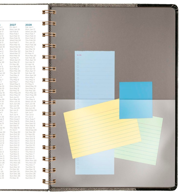 - ENHANCED ORGANIZATION – You’re here to achieve! Special pages help you do more and include a holiday list, 3-year reference calendar, event calendar, contacts, notes and a double-sided poly pocket.