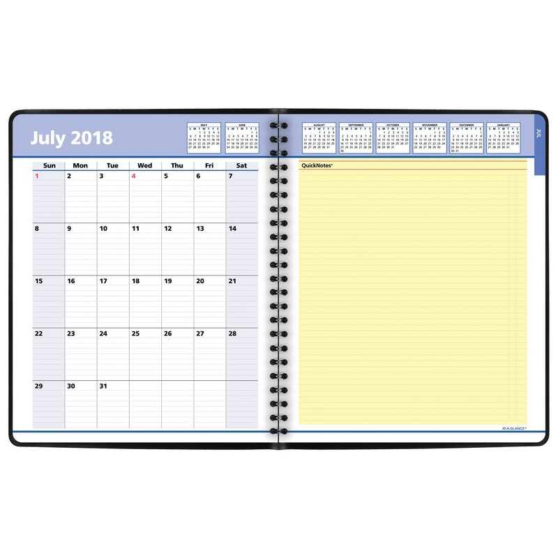 AT-A-GLANCE Academic Weekly/Monthly Planner, July 2018 - July 2019, 8" x 9-7/8", QuickNotes, Black (761105)