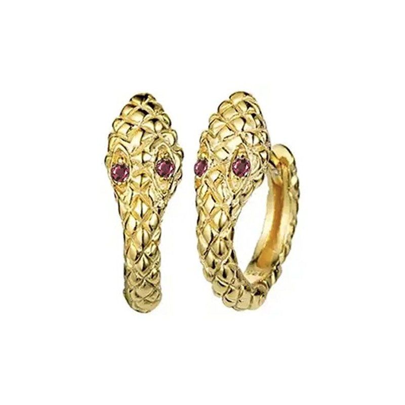 AT Jewellery - 9ct Yellow Gold Filled Small Python-Snake Ruby Red Gemstone 10mm Huggie Hoop Earrings