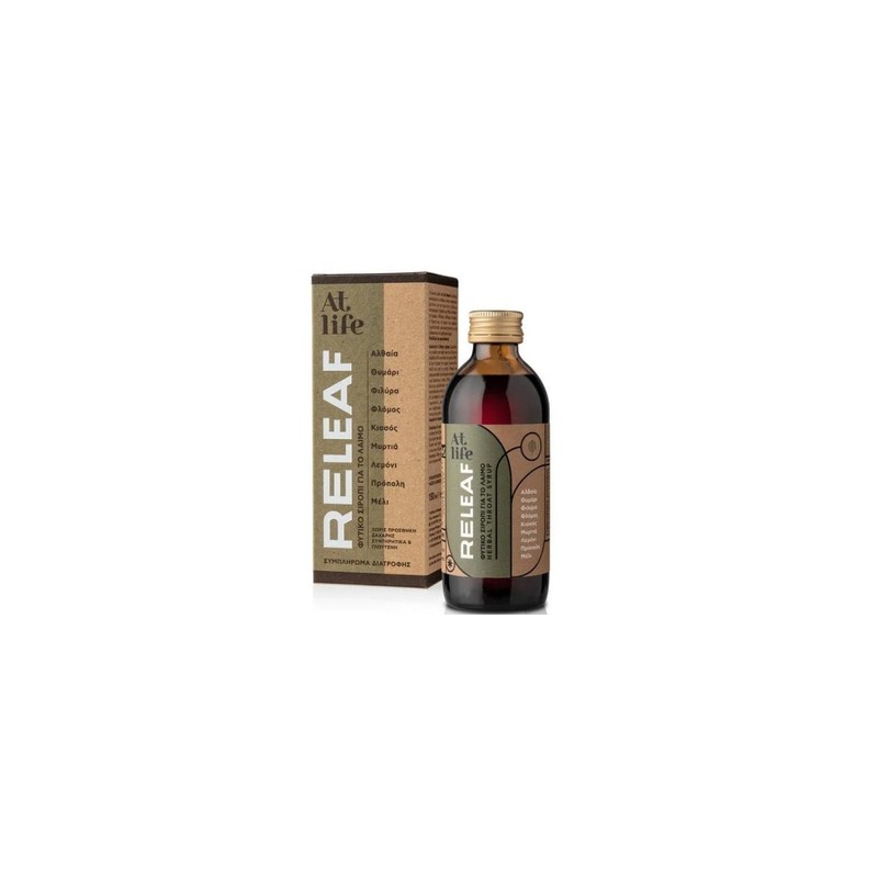 At Life Αt Life Releaf Herbal Syrup with Althea, Thyme, Linden, Mullein, Ivy, Myrtle, Lemon, Propolis & Honey, 150ml