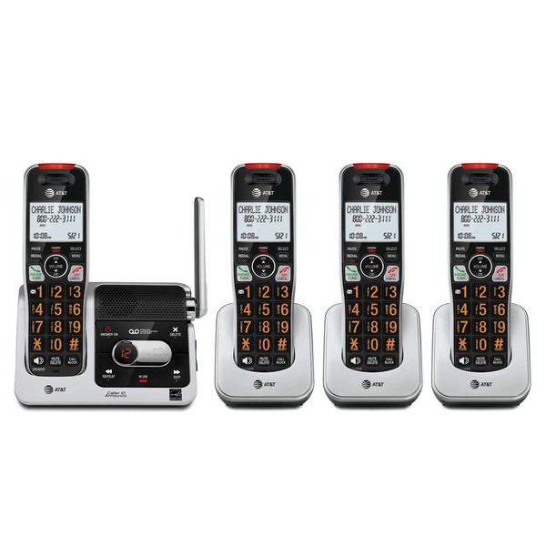 AT&T BL102-4 DECT 6.0 4-Handset Cordless Phone for Home with Answering Machine, Call Blocking, Caller ID Announcer, Audio Assist, Intercom, and Unsurpassed Range, Silver/Black