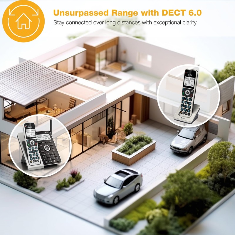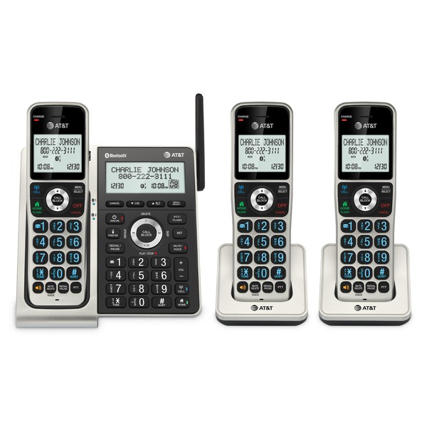 AT&T BL3107-3 3-Handset DECT 6.0 Cordless Home Phone with Bluetooth, Answering System, Smart Call Blocker, Extended Range, 2" Backlit Screen, Lighted Keypad with Big Buttons, Caller ID & Call logs
