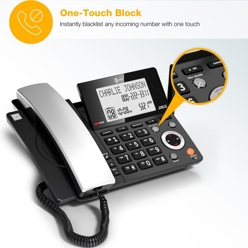 - [Smart Call Blocker] - Say goodbye to unwanted calls. Store up to 1,000 names and numbers to your block list. Robocalls on your landline are automatically blocked from ever ringing through—even the first time. You can also blacklist any caller on the spot with the dedicated key on the handset.