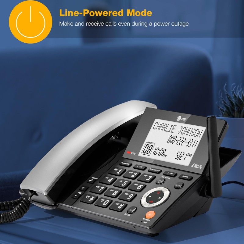 - [Line-powered Mode] - The base unit can be line-powered, allowing you to make and receive calls during an outage.