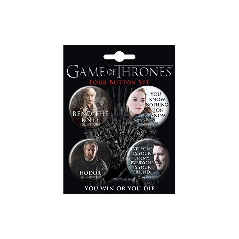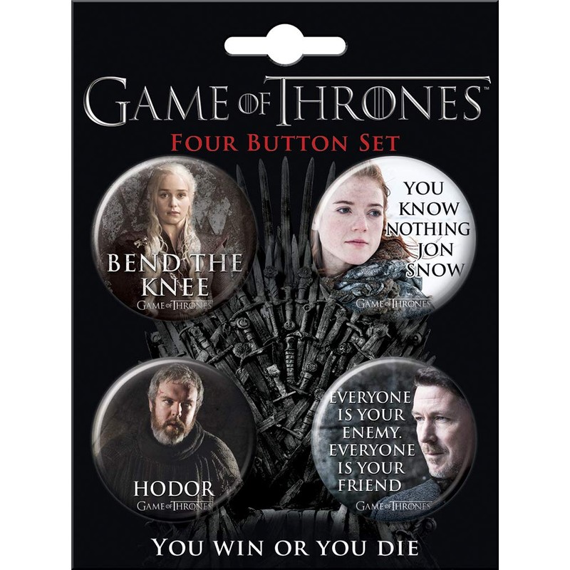 - Includes one each of four different Game of Thrones Character buttons including Daenerys, Hodor, Ygritte and Littlefinger; each button measures 1.25" in diameter