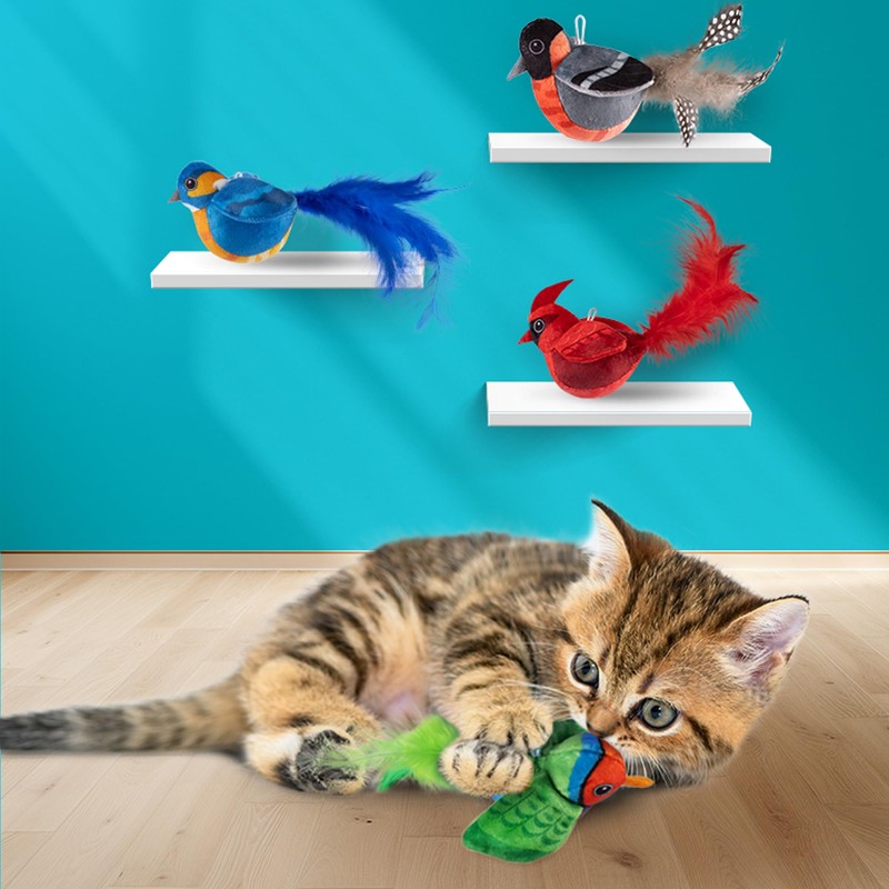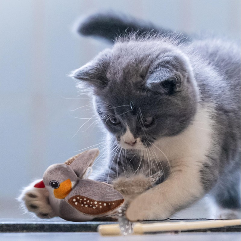 • Realistic Chirping Sounds - Touch-activated smart sensor delivers authentic bird chirps to instantly grab your kitty's attention and trigger natural pouncing, kicking and chasing behaviors.