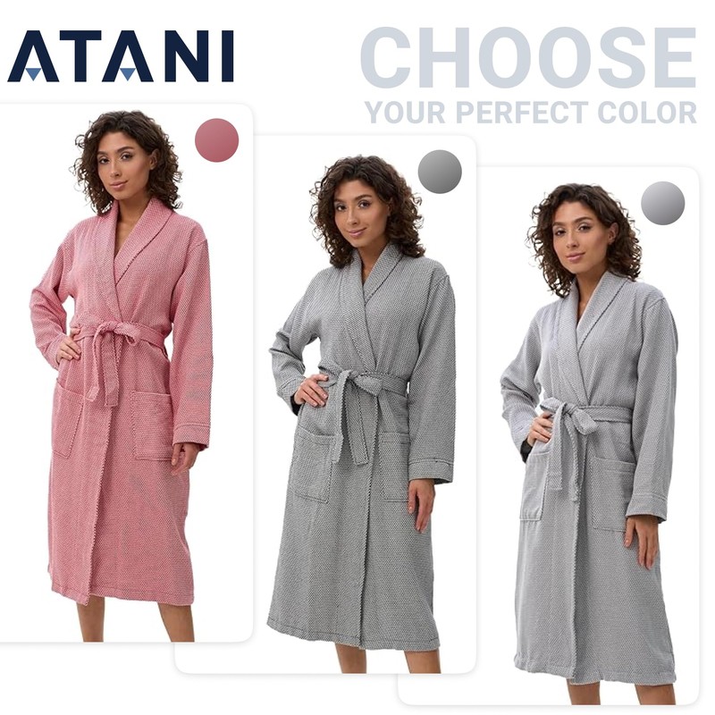 ATANI Premium Cotton Bath robe for Women, Soft & Warm Waffle Spa Turkish Robe (L Black)
