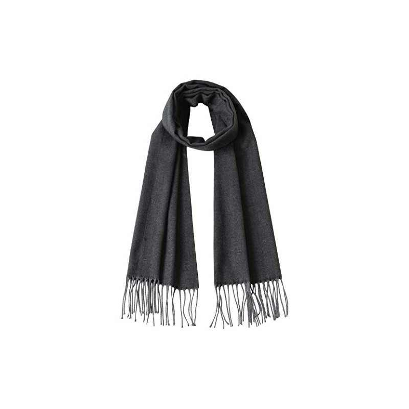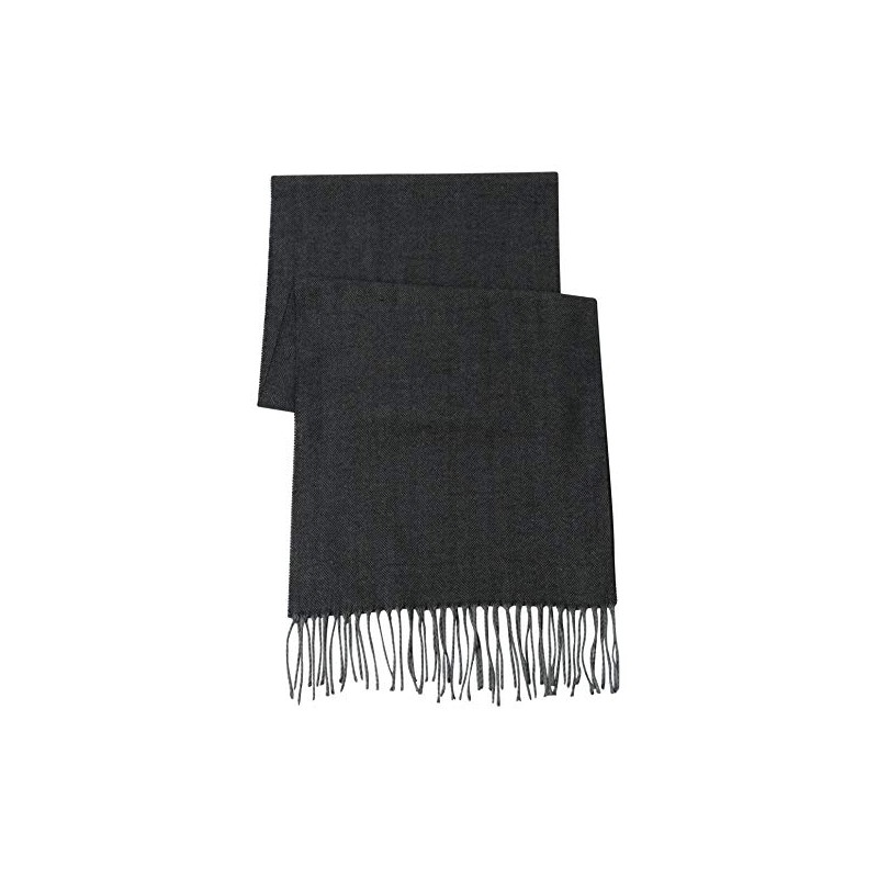 Atano Mens Fine Soft Scarf with Tassel Ends Black Herringbone