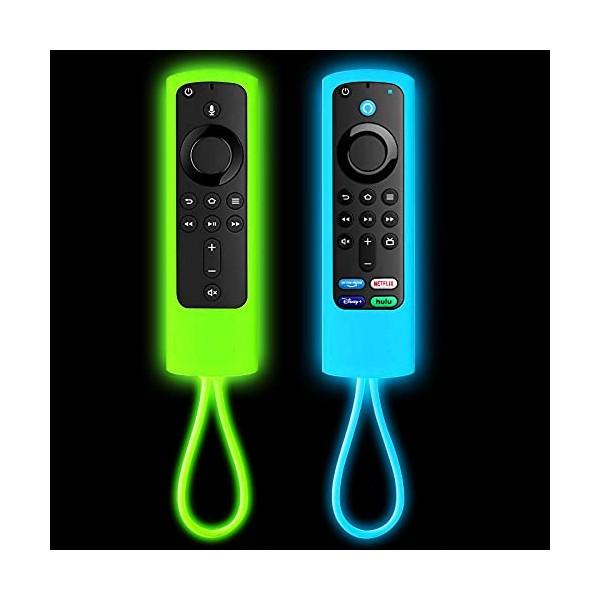 [2 Pack] Climberer firestick Remote Cover, Replacement for FireStick Streaming Media Device | firesticksticktv 4k+ 2021 | FireStick 4K Max | firestick Lite | Stick Cube | (Sky Blue Glow & Green Glow)