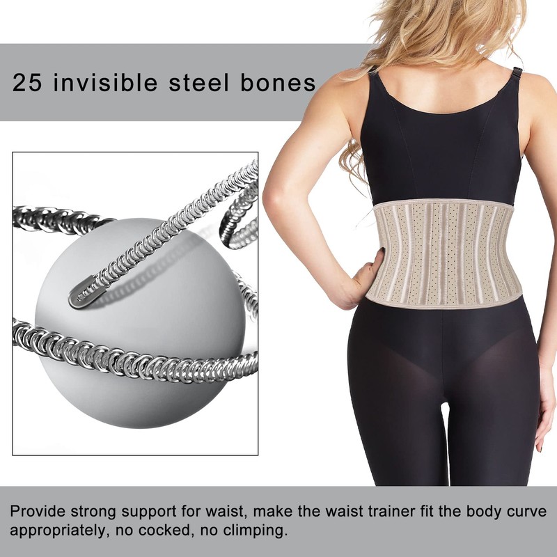 - KEEP CORRECT BODY POSTURE: The spiral steel bones of the tummy trainers are covered in front and back for offering support, smooth waist line, and make your waist stiffness and keep your straight and prevent slouching. And the waist shaper also can protect back and reduce back pain.