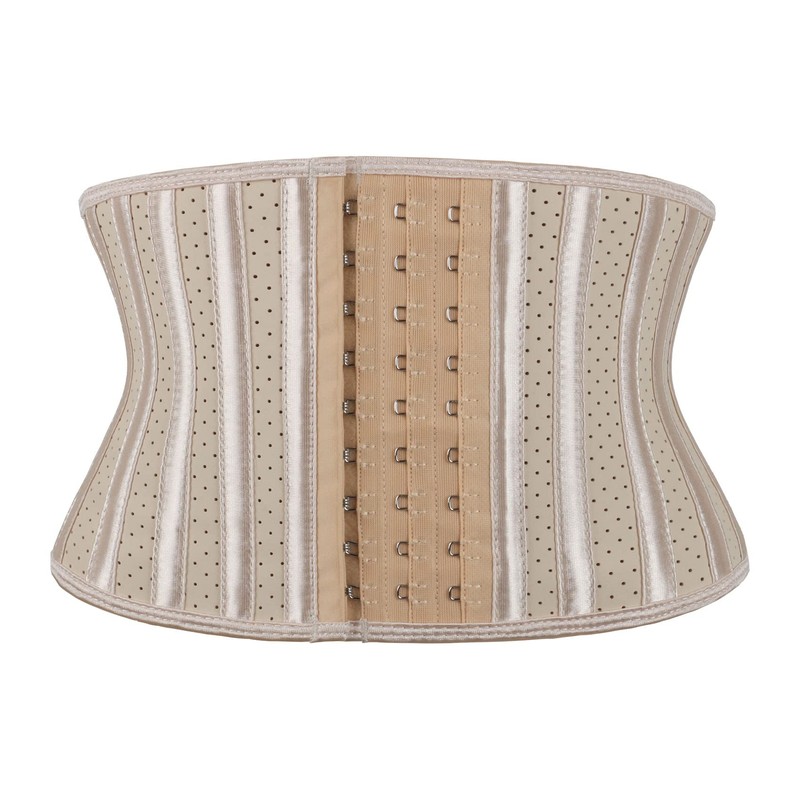 Atbuty Super Short Torso Waist Trainers Cincher Corset Tummy Shaper Slimming Latex Trimmer Girdle, Beige (7'' Torso, Breathable, 25 Bones), 2X-Small