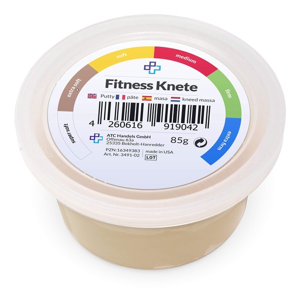 ATC Handels GmbH Fitness Clay in 6 Different Resistance Levels - for Hand Training, Anti-Stress, Hand Muscles, Fine Motor Skills - Malleable, Versatile and Strengthening (85 g - Beige, Extra Soft)