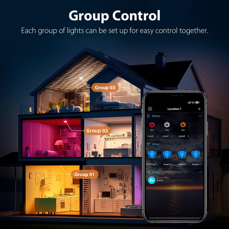 - Preset Scenes & Timing Function: We can pre-set the lights for each scene through the ATCD APP, and automatically turn on and off the lights by setting a schedule, especially turning on soft lights in the morning to help you wake up, and dimming the lights at night to help you fall asleep