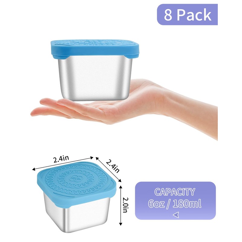 Atecare Snack Containers, [16 Piece-6 oz] Stainless Steel Snack Containers, Easy Open Square Food Containers with Leak Proof Silicone Lids, Stackable Metal Lunch Box Great for Lunch to Go