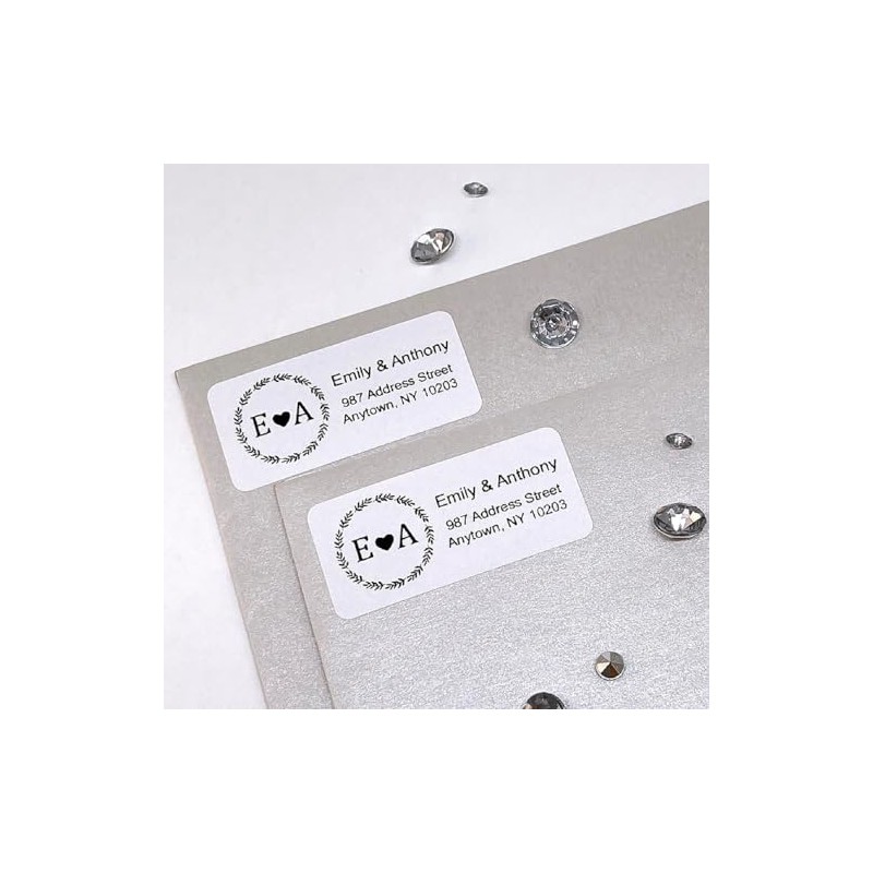 Atelier Elegance Custom Address Labels, Any Names, Inititals, Heart, Couple