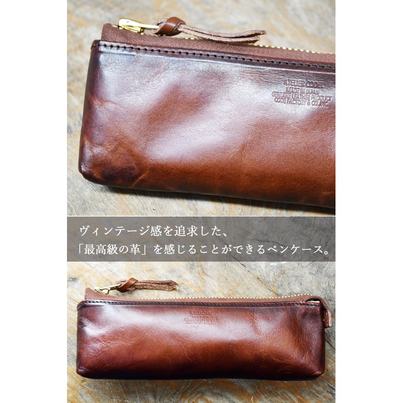 atelierCODEL Pencil Case, Leather, Tochigi Leather, Premium Leather Texture, Hand dyed brown, American Vintage